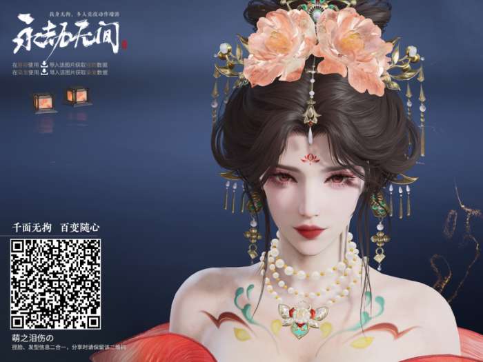 正红色的瞳孔如同一对玛瑙石,她浓密睫毛仿佛是蝴蝶的双翅,眨眼之间犹如蝶翼扇动,这套捏脸整体给人的感觉更加大气且优雅,一个词形容:国色天香!简直是妈妈级别!