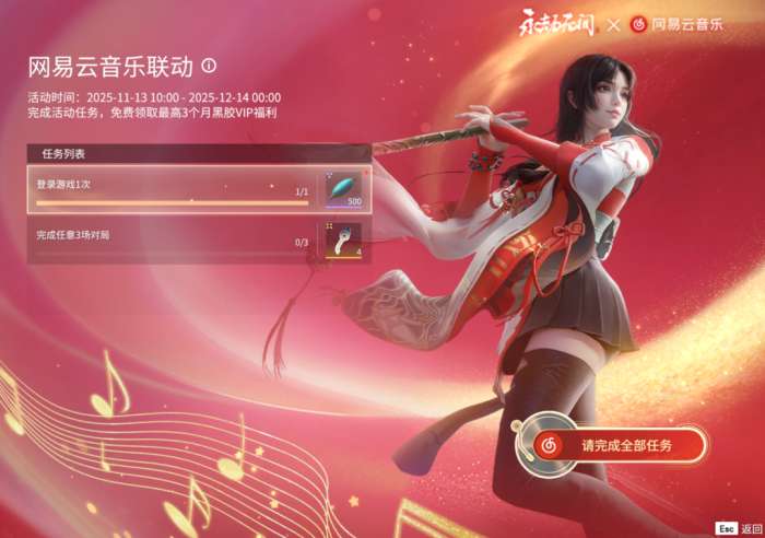 完成活动界面的超简单任务,即可免费获得一次领取黑胶福利的机会!本次福利发放数量有限,领完即止,快快上号薅了这波羊毛!