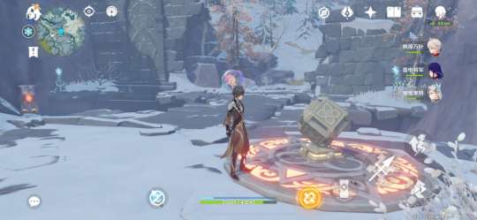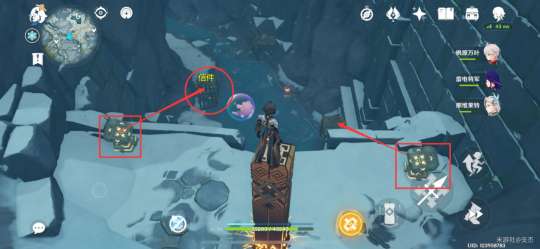 过来断桥处,点亮四处冰元素方碑,解锁机关并启动,桥下的水位下降