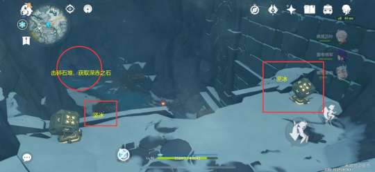 下来,击碎山洞处的石堆,获取深赤之石,然后破除两处坚冰