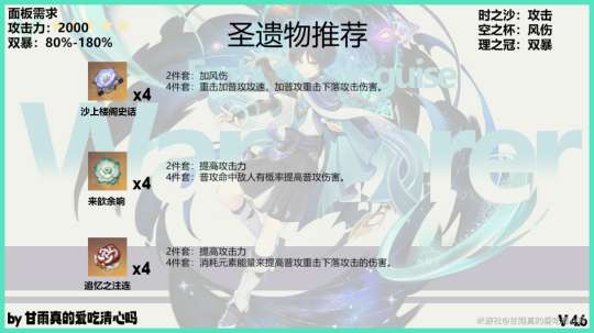 楼阁是比较通用的圣遗物,就是需要重击一下影响一点手感。