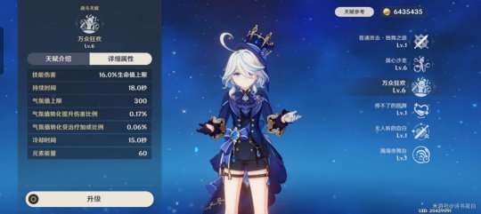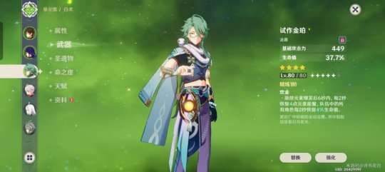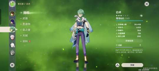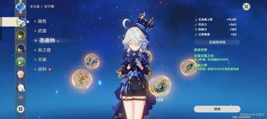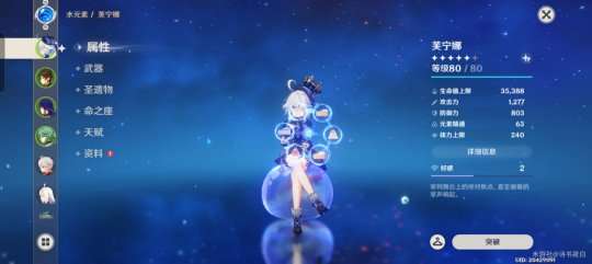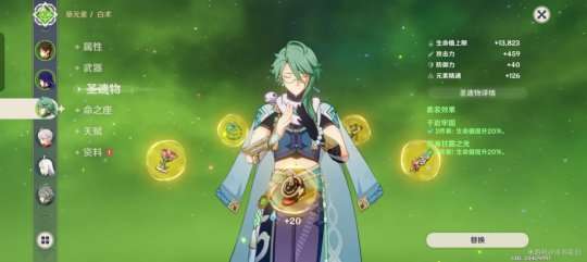 只有六十级,血量已经达到30000与芙芙相差不大,圣遗物纯叠生命和治疗效果
