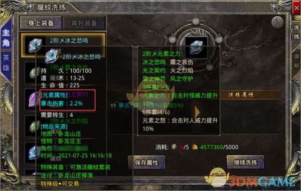 1)而每个龍纹能够洗练的属性条最多能生效4条元素属性;
