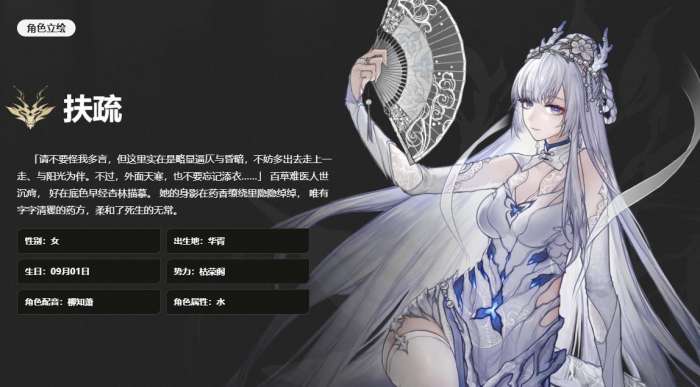 扶疏是众多角色的其中一个,这个角色会身穿一身白衣,在游戏里的定位是泽被苍生,作为一个水属性的角色,攻击力虽然并没有那么优秀,但是在对战的过程中可以主打治疗和辅助,如果想要对这个角色进行培养的话,那么玩家就需要多去提升角色的治疗技能,比如多通过等级的提升,让角色的技能达到满级,这样才能保证在对战的过程中,角色的治疗能力可以覆盖整个队伍的所有成员,另外还需要去提升神归心舍这一项技能,不但可以产生护盾,同时还可以在对战的时候紧急治疗,玩家可以在关键性的节点释放,可以帮助自己或者队伍的其他成员恢复生命值。