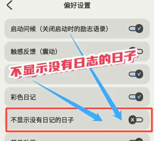 在偏好设置窗口点击打开【不显示没有日记的日志】即可。