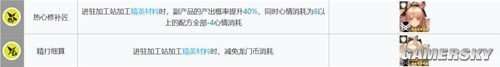 特殊通用系基建中的瑕光是一个很特别的职业。在加工站中,她的关注点与其他人不同,不是注重提高材料的副产物加成,而是降低合成材料的消耗。这项技能可以给非洲博士般的工作者带来巨大的益处,每个材料加工最多可节省400龙门币和降低4点心情消耗。这无疑是一项非常省钱的技能。