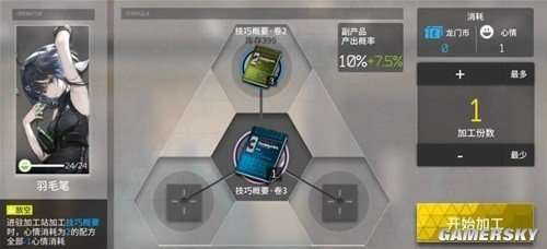 新干员羽毛笔以“加工特定概要时心情消耗会降低”的特点著称,其干员技能仅次于赫拉格,非常实用。目前最适合羽毛笔的工作是批量合成高级技能书,数量越多越好。但是考虑到资本家的节流属性,我们需要优化工作流程:优先考虑使用赫拉格或炎客去合成技巧概要,等到他们的心情值消耗完了再使用羽毛笔。