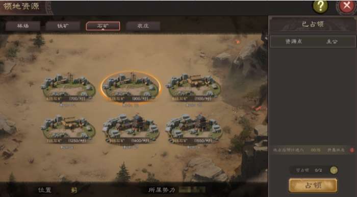 技巧:优先占5-6级地(兵损低),后期再换高级地。