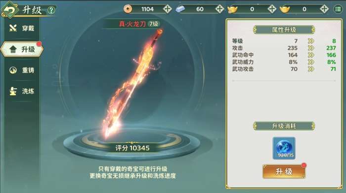 得到奇宝只是开始,如何将它培养成独步武林的绝世神兵才是少侠们要牢记的重点!