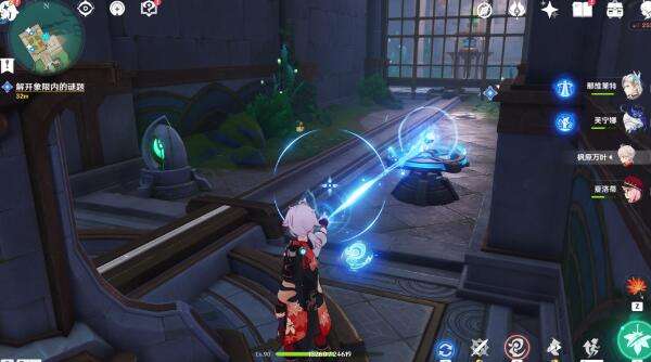 4、击败附近的敌人将机关的激光位置调整,使其超过白球即可打开。