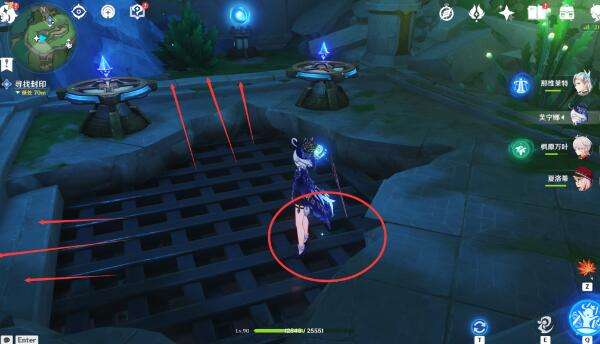 1、首先我们需要拉掉如图所示的七天神像附近位置处,在这里附近需要寻找封印。