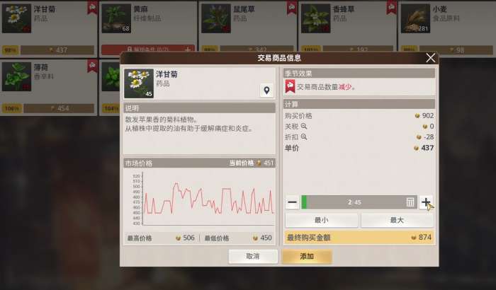 贸易系统的运转始终围绕着商品价格的波动与资源在不同港口间的流转展开,而达克特作为贯穿其中的核心货币,积累速度直接决定了后续船只升级、航海士培养乃至舰队规模扩张的节奏,玩家刚接触贸易时,最先要掌握的就是港口交易所里的价格规律,每个港口的每种商品都有一个隐性的基准价格,当实际售价低于这个基准时,就意味着存在采购价值,反之则可以卖出获利,实际操作中抵达一个新港口后,最好先花几分钟仔细浏览交易所的行情面板,留意那些标注着特产的商品,交易所界面偶尔会弹出的贸易活动提示或商品流行事件,往往是赚取超额利润的关键。