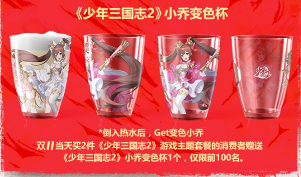 除了为玩家准备丰盛的汉堡王套餐外,《少年三国志2》更想通过这次联动活动表达出想要陪伴玩家“一辈(杯)子”的愿景!在双十一当天,前100名购买了2份《少年三国志2》主题套餐电子券的少年,还将获得特别限定款的小乔变色杯一个!