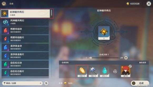 注:因为岩神瞳共鸣石的需求不一,在这不计算用于合成岩神瞳共鸣石的石泊数量。