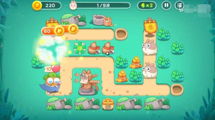 第17关的兔兔变得更加凶猛,我们需要先将一个风扇升级到顶格,这样才能在后续的战斗中取得优势,然后利用空闲的时间我们偷偷发展炮塔来清掉周围的物品,这样好让自己快速获得收益,有了金币,接下来的事就好办多了。
