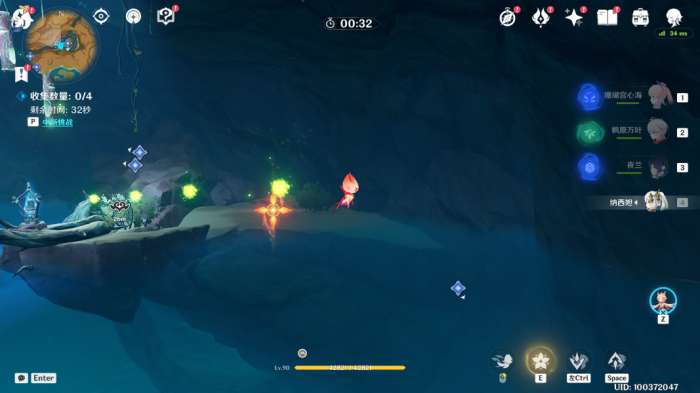 (3)水鼓:操控「花灵」,调整特殊的四叶印位置(E收取,T放置),完成挑战降低水位,来到底层即可