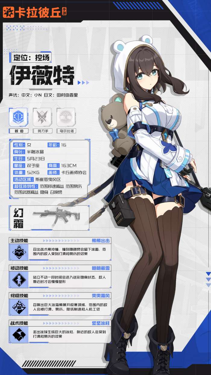 软件提交 专题合集 热门手游内向弱气,寡言少语的少女伊薇特,是从属于欧泊的研究员。她冰雪一般的外表下,是一颗关爱友人的火热内心。在小熊“菲”的帮助下,她所创造的冰霜能让敌人寸步难行。下面是《卡拉彼丘》伊薇特角色图鉴分享!