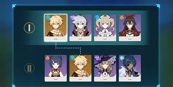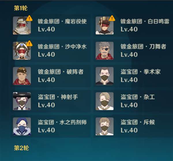 ● 在挑战开始前,需要编辑队伍阵容,2轮战斗的队伍中必须存在一位相同的角色,其他角色不可重复。