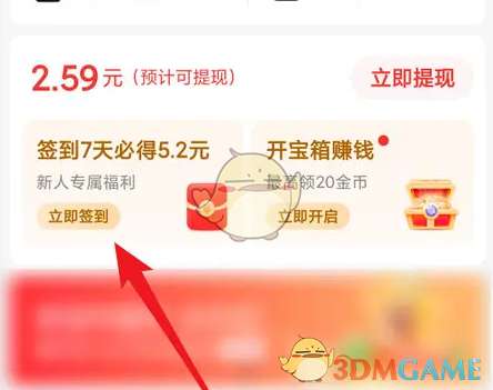 2、打开“我的”界面后,点击“立即签到”按钮,如图所示