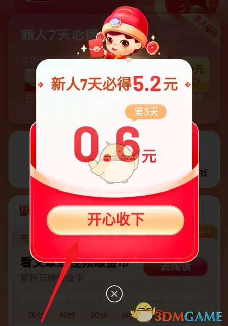 3、签到成功点击“开心收下”即可,如图所示