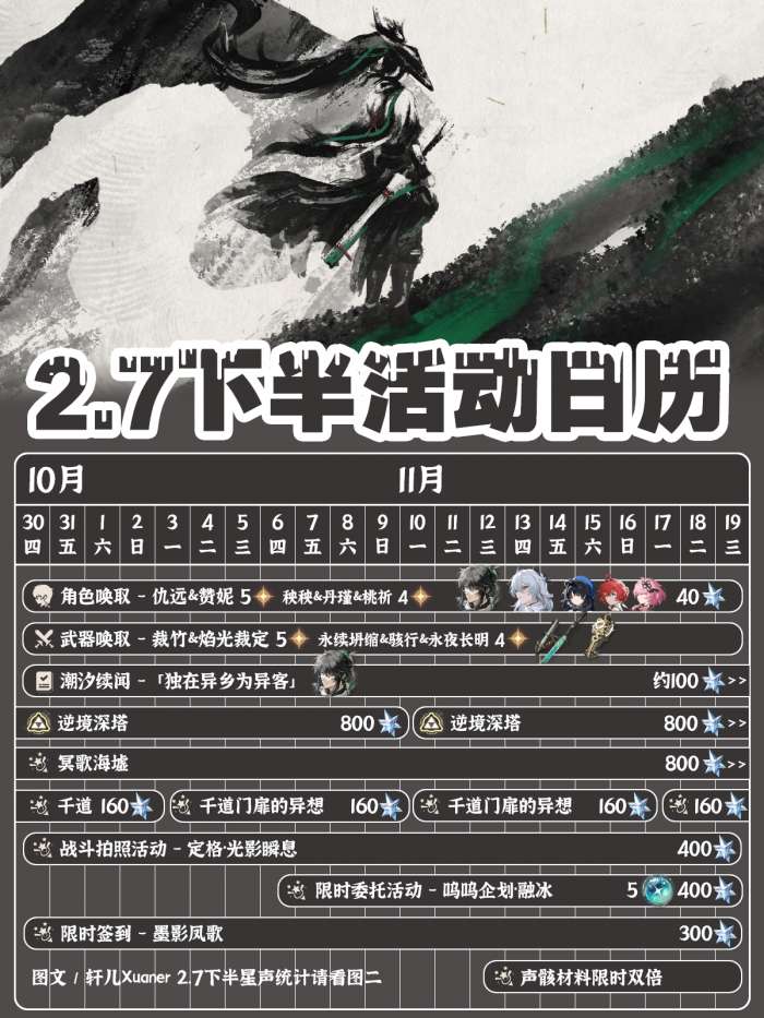 软件提交 专题合集 热门手游鸣潮V2.7下半有什么活动,鸣潮2.7版本更新,下半还有不少活动,本篇攻略内容为大家总结鸣潮2.7版本下半活动和2.7下半星声(图二),而且逆境深塔1期+千道门扉3期两个周常玩法共计1280星声,大家记得打!