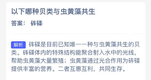 以上就是以下哪种贝类与虫黄藻共生?神奇海洋今天答案最新2026年2月26日分享,更多相关攻略内容,请点击关注pk游戏网更新!