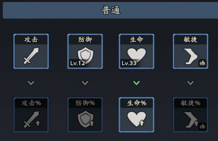 研究顺序:生命、攻击、防御、敏捷、生命百分比、攻击百分比、防御百分比、命中、暴击率、暴击效果。