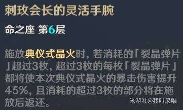 大招命中后减20%岩抗,提升较一般,对比3命仅有10%,在4命这个位置有点贵了。
