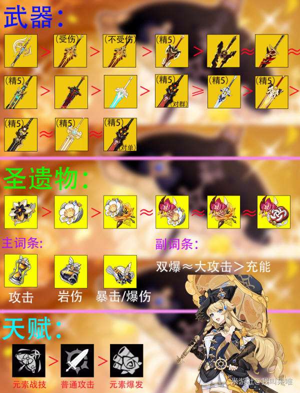新出的圣遗物:回声之林夜话非常契合娜维娅,伤害方面也是最优解。