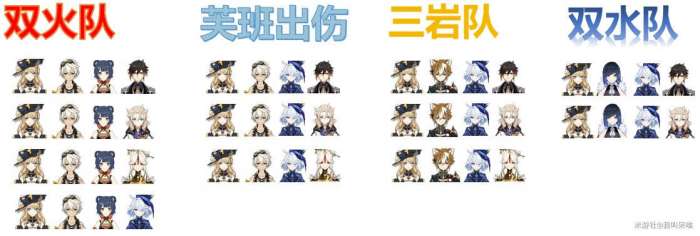 各种各样的队伍都是OK的,比如一斗岩队,胡行钟、魈珐班等不绑定4个人的队伍。
