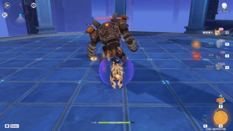 我们要保证第一轮的第一个E能叠尽量多的弹片后射出去,后续有娜维娅的大招和普攻的岩附魔,所以不太需要担心叠层的问题。