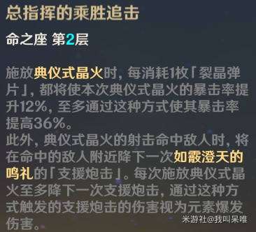 ①增加元素战技36%的暴击率,加的还是挺多的。