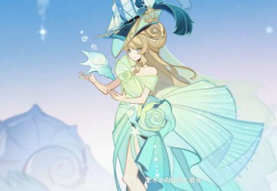 娜维娅的帽子的形状竟然被设计成了帆船的模样,不愧是千织,怎么保证这款帽子不沉的呢。娜维娅裙子整体设计已经算三次元中比较正常的了,腿部的大玫瑰花,侧面开叉的包臀裙,适配的大小姐,看起来非常优雅。