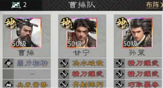 但是在合理排兵布阵的过程中,也是需要将英雄最大的优势发挥出来,就比如其中的曹操是不需要站在追击格当中,而另外两位英雄却需要站在曹操的追击格当中,还需要互站。在这三位英雄周围也可以正确放置西凉铁骑,或者是五斗米祭等等。这样的巧妙搭配才能够将这三位优秀英雄的天赋技能发挥到极致,其实这些人物都有独特的技能,是其他英雄无法相比的。