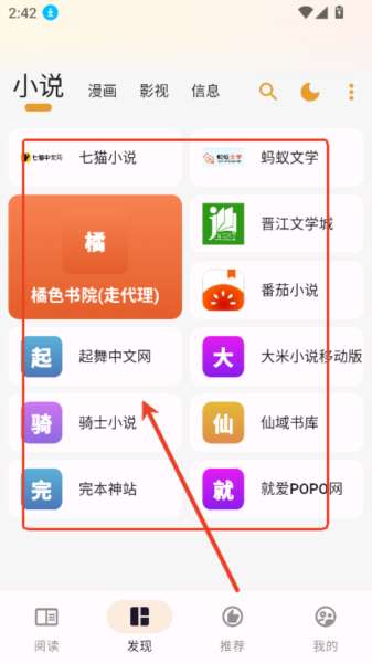 7、进入发现板块,还有大量小说网站,可以任意选择进入