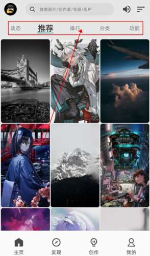 用户在本站下载并登录软件后,可以进入到首页,在上方选择自己喜欢的壁纸分类。