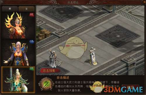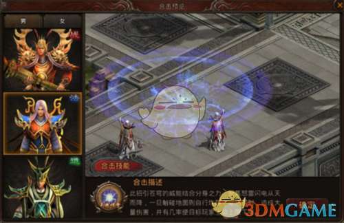 合击技能-怒斩天下:对前方敌人造成伤害,同时对目标后方角色造成贯穿伤害。有几率无视目标防御和消耗目标魔法值。
