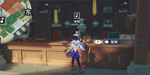 3、接着我们就寻找到NPC星稀,进行演奏璃月的晴空:2122。