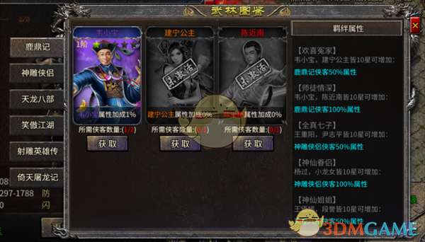 在游戏过程中,50级的主线任务完成后将会开启侠客系统,我们会获得游戏中的第一个侠客——韦小宝。然后在70级的时候,会开放跟侠客息息相关的另一个系统,也就是今天要介绍的图鉴系统。