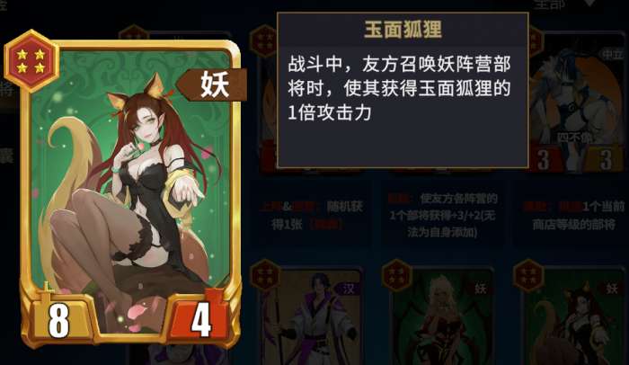 玉面公主:召唤出的怪获得攻击加成,玉面公主提高阵容上限。