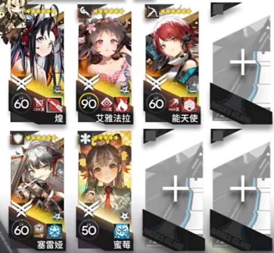 近卫:煌、塞雷娅、艾雅法拉、蜜莓、能天使