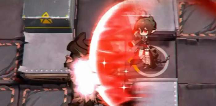 接下来谈谈隐德来希的二技能,技能的机制是她会主动停止攻击,然后选择一个周围九格内的友方干员,开始为其和自己周围的敌人造成每秒伤害。而且,看起来她似乎可以为自己恢复生命值。这样的设计,感觉像是一个综合了伤害和回血的技能,既能对敌人进行持续打击,又能保障隐德来希在持续战斗中的存活能力。