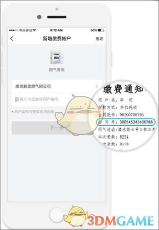 3、选择所属燃气公司,并输入用户编号,确认无误后,点击「下一步」(用户编号可查看纸质缴费账单哦~);