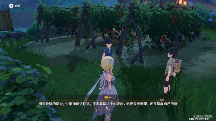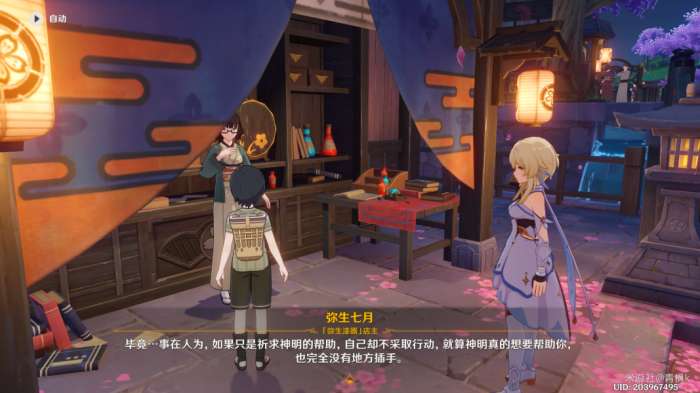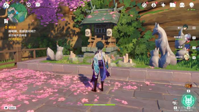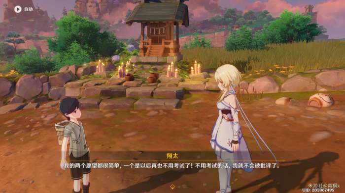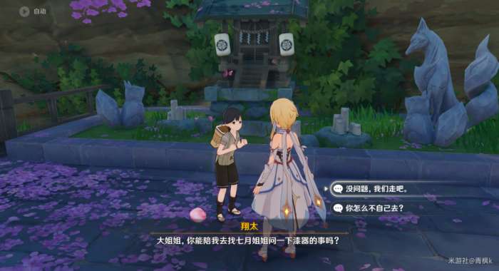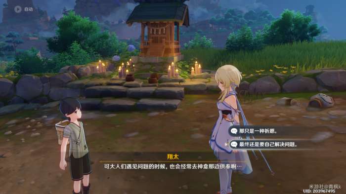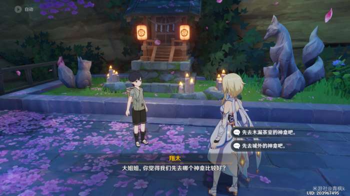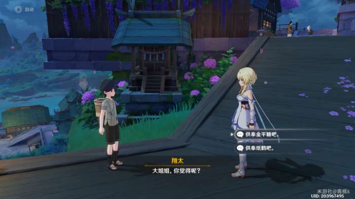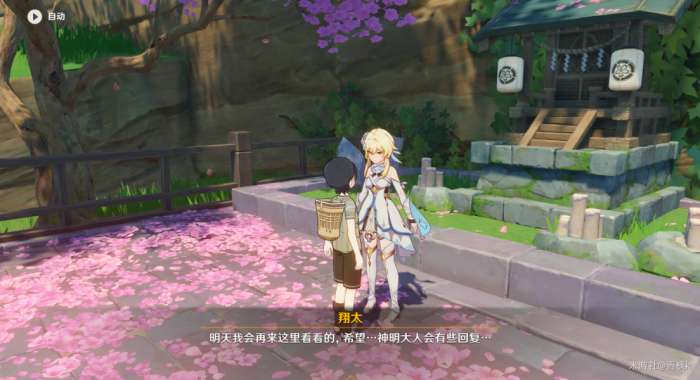 完成过委托〔神明啊,回应我吧!〕以及〔神明啊,再次显灵吧!〕的两处供奉后,来到翔太这边出现世界任务〔神明啊,我做得对吗?〕