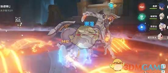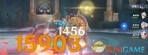 2、再切芭芭拉挂上水环,切香菱丢出锅巴,使用琳妮特元素战技扩风。