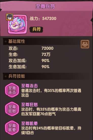 眩晕:配合多重大招,频繁群控敌人。拥有粉色兵符后,多出来的词条可以选择洗练:复活、再生。