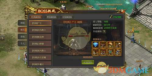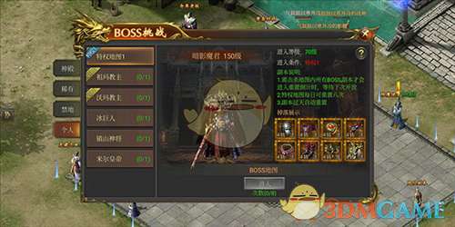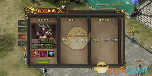 此类BOSS比较特殊,它会随着开服时间逐步开放,但不消耗降魔卷轴,由于无法携带英雄进入,所以难度也较高。