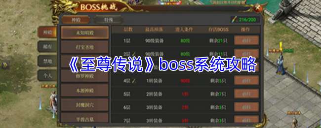 以上就是小编带来的至尊传说boss介绍,至尊传说boss系统攻略,更多相关攻略,请关注pk游戏网。