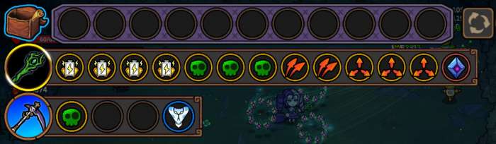 如果在之前的游玩过程汇中尝试过【叠毒】且非常喜欢,那【收割者】套装也必须品鉴。相比其他套装,收割者叠毒效率更高,而且被动自带【合成法术】,可以节省背包空间。叠毒可适配的法术很多,我先推荐一套以【棱镜棱形】【节能施法】组成的构筑,欢迎大家尝试。