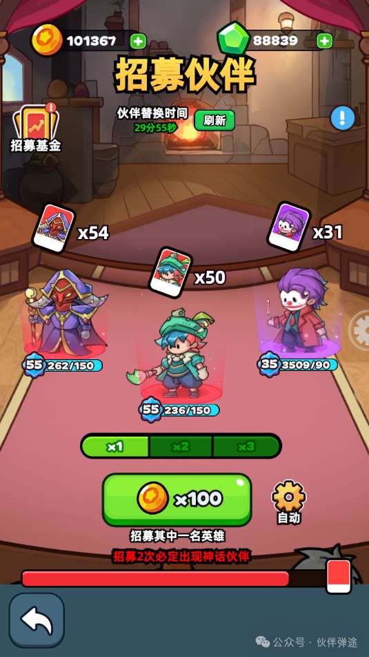 3. 抽取技巧:解锁“三倍抽取”后,仅在“红色保底”阶段多刷新界面——需刷出2个有用伙伴(神话/传说品质)后再三倍抽取,非红色品质伙伴不要用钻石抽取。